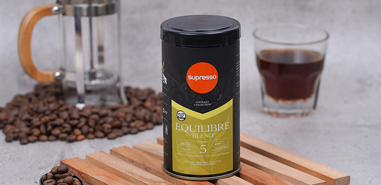 50% Arabica - 50% Robusta. A 50/50 blend of Arabica and Robusta beans made with coffee grown and farmed in Indonesia and roasted with the City+ Roast mode. With a lower acidity compared to our Signature and Espresso blends, Equilibre is a balanced blend which possesses good body alongside sweet fruity and floral aftertastes with nutty and warm spice nuances.